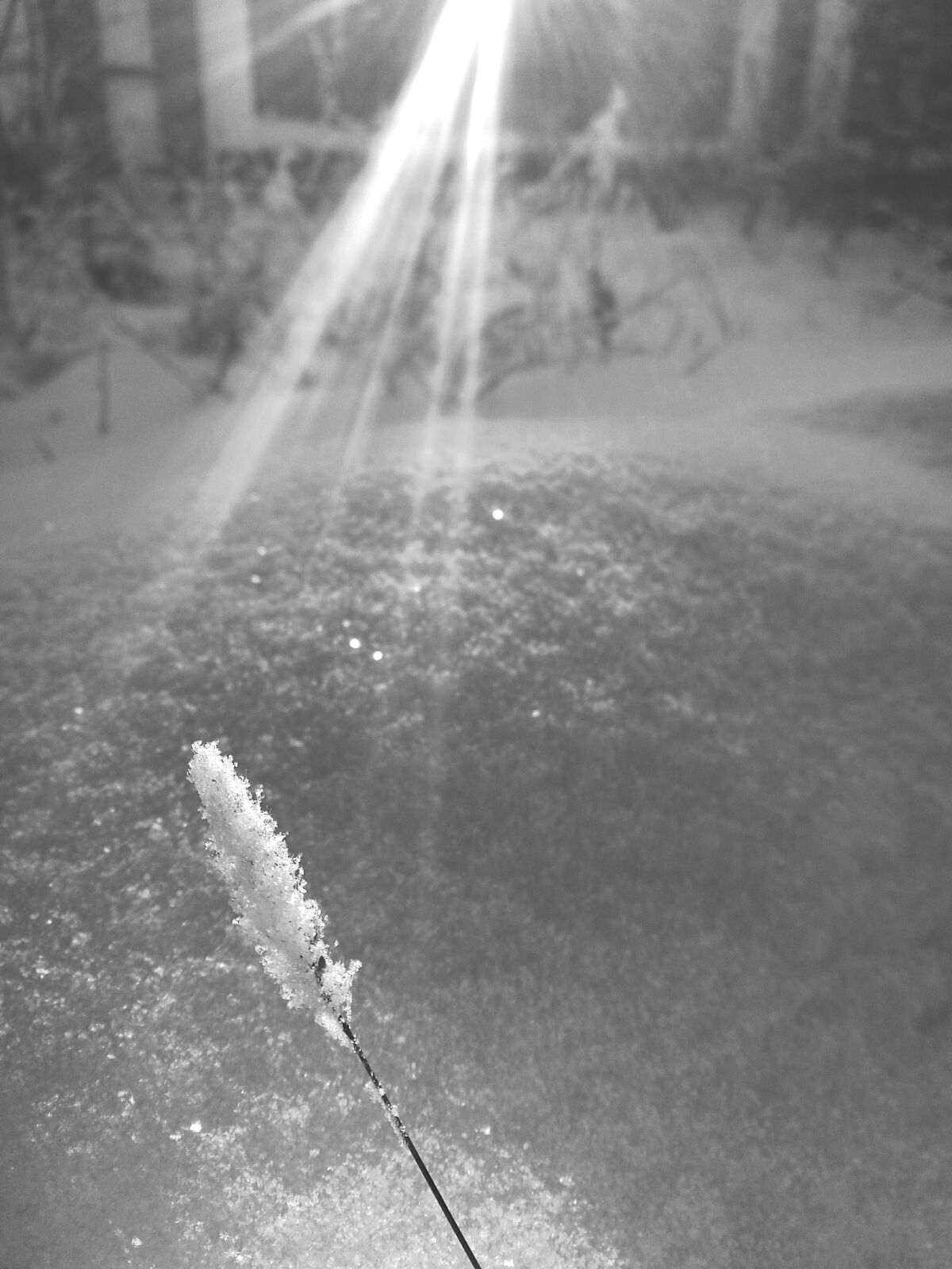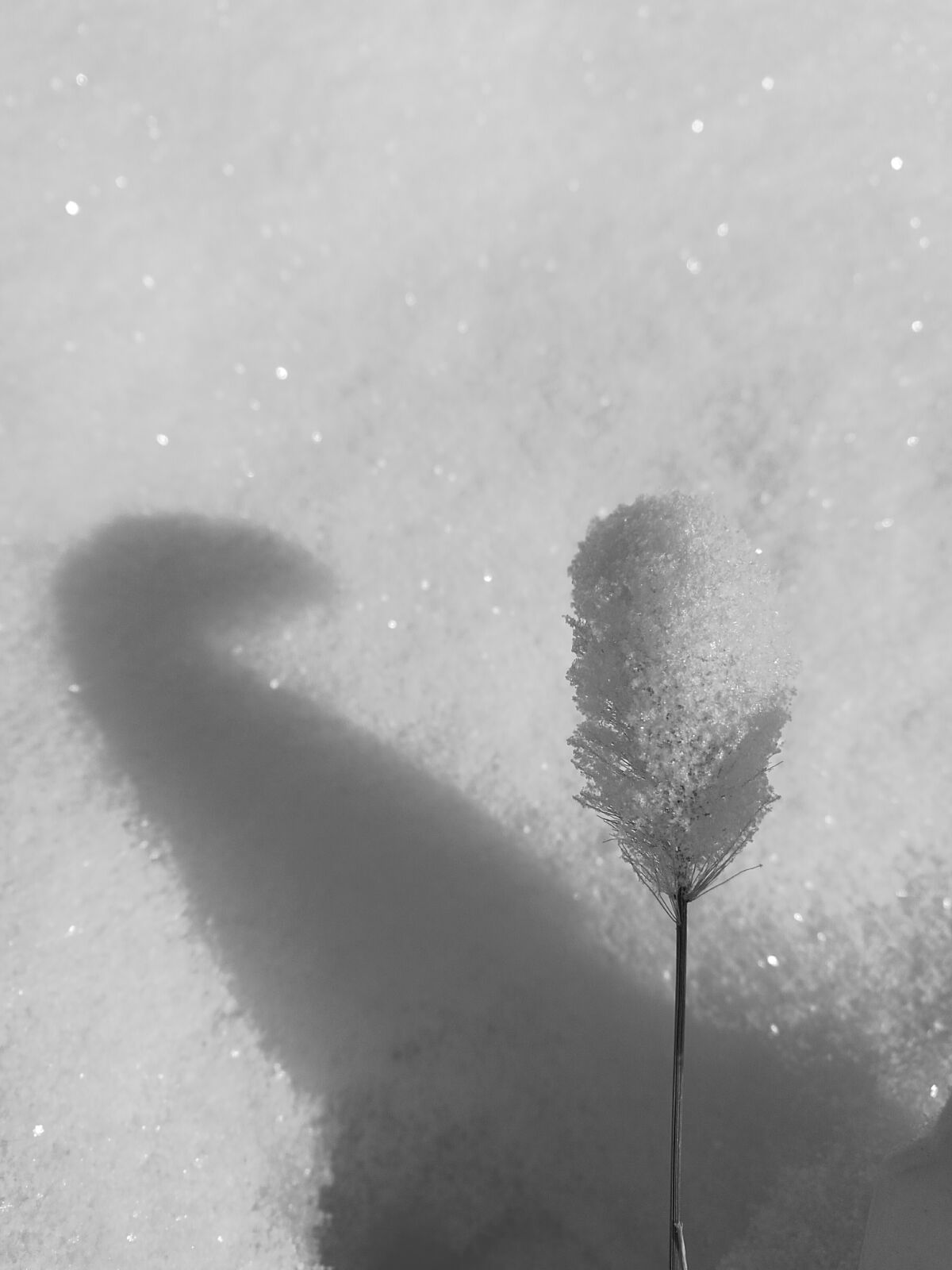 映在雪地上狗尾草的影子,打了一個(gè)彎。