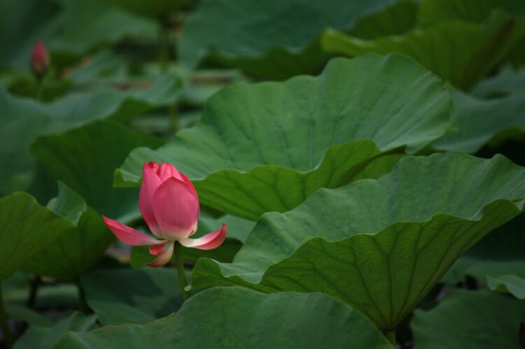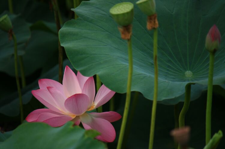 碧荷生幽泉,朝日艷且鮮。秋花冒綠水, 密葉羅青煙。秀色粉絕世,罄香誰為傳?