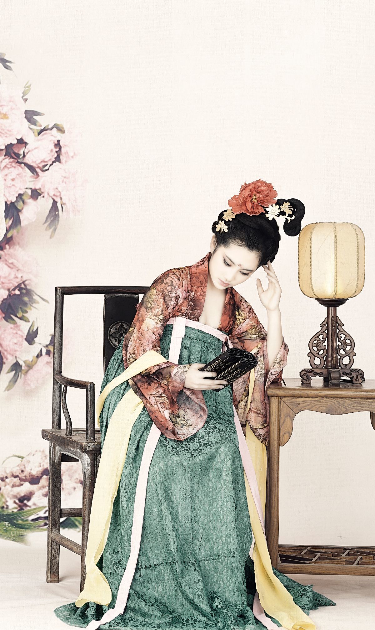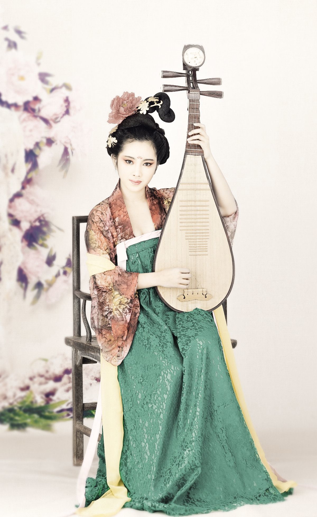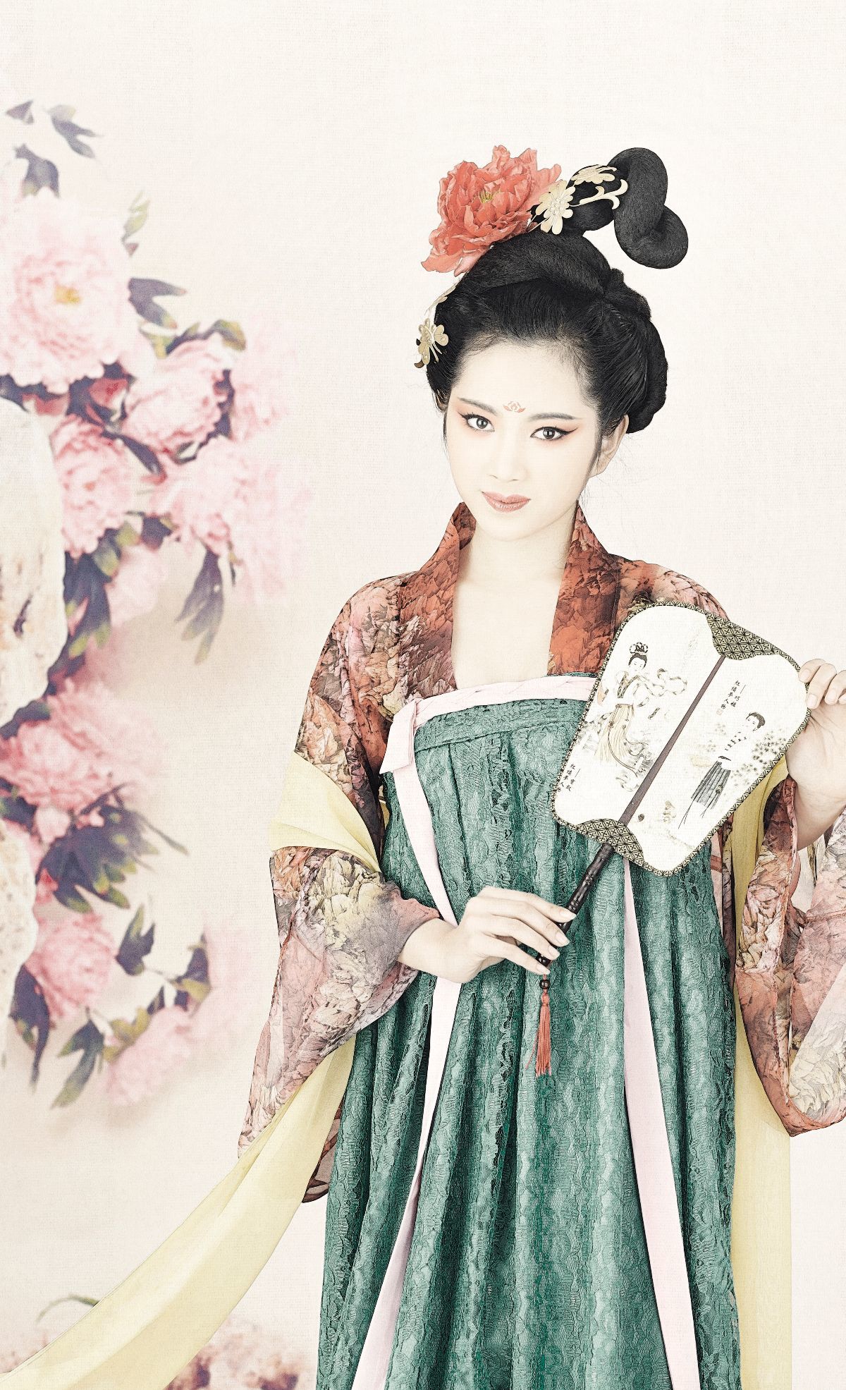 香臉輕勻,黛眉巧畫宮妝淺,雙蝶繡羅裙。