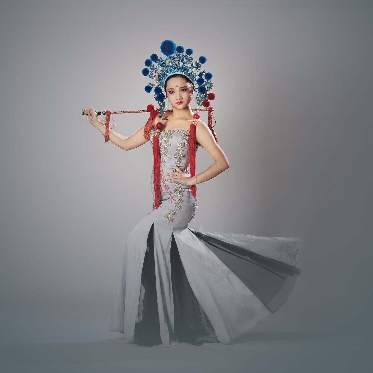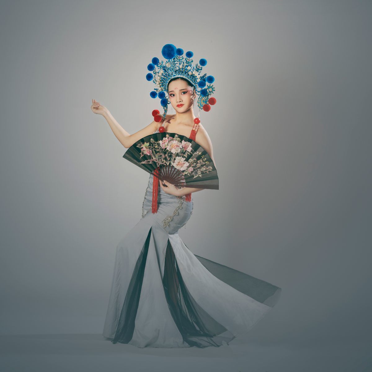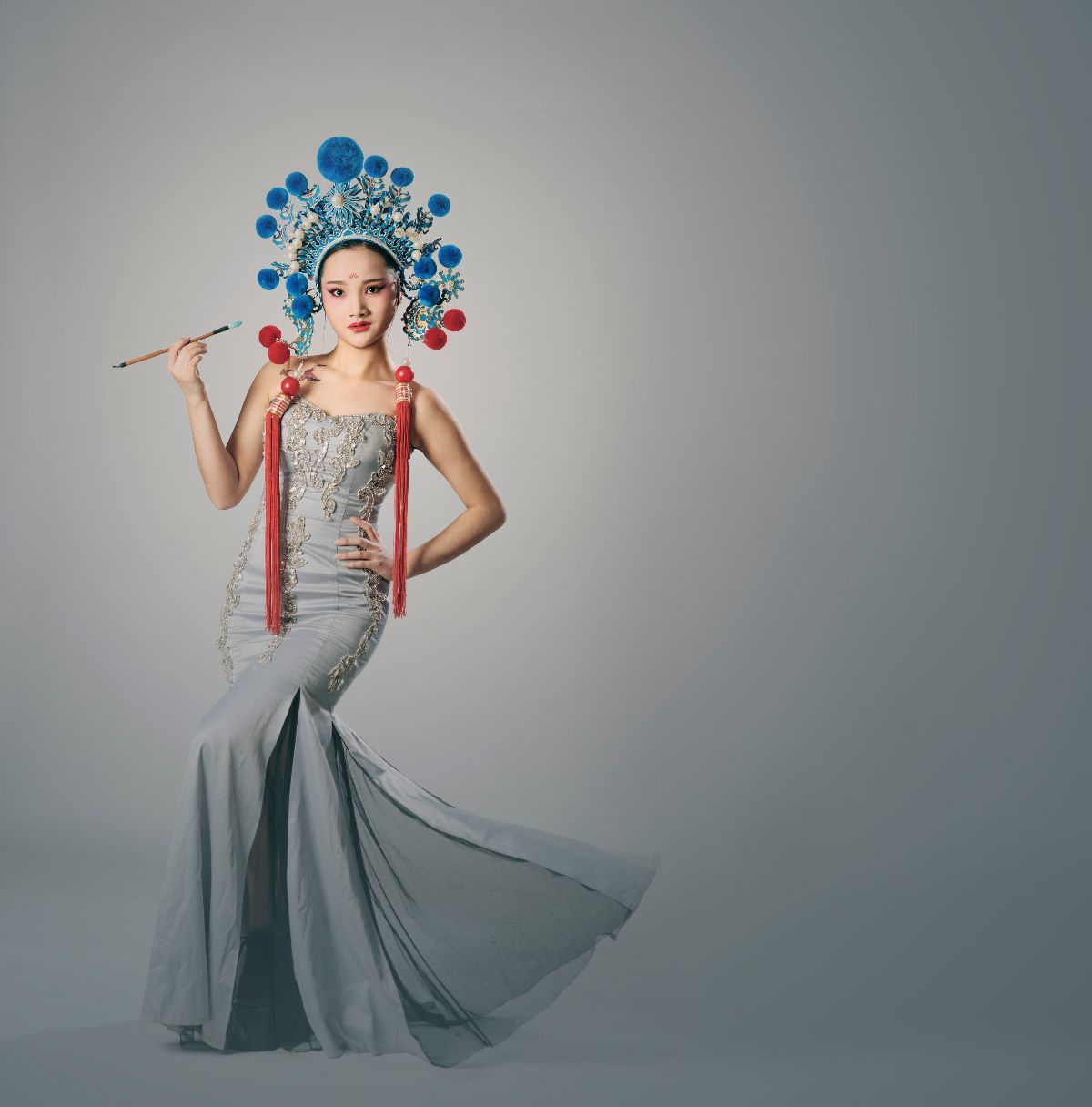 香臉輕勻,黛眉巧畫宮妝淺,雙蝶繡羅裙。