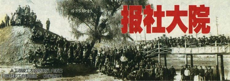 每天晚上,廠房里燈火通明。后半夜,當人們進入夢鄉(xiāng)之時,這里工人卻在緊張有序地進行著排版、校對、審定、印刷等工作。后來,廠區(qū)中間又蓋起一座組合型的廠房,高兩米左右、長十余米的高速鉛印輪轉機就安裝在這里。我們還是學童時,初次看到這臺機器印刷報紙,都驚呆了。它工作起來聲音很大,機器的一頭吊裝著大卷的新聞紙,另一端是印好的報紙——對疊著一張接一張從輸送帶上流出來。我們那時既為它的龐大感到驚訝,又對設備的自動化倍感驚奇。廠區(qū)的北面就是綏遠城城墻,這段歷史遺留下的天然屏障,自然而然成了報社大院的北院墻。1955年,內蒙古日報社職工自己動手,硬是在報社大院的西北角挖出一個頗具規(guī)模的人工湖,并且用挖出的土在湖邊壘起一座小山。1955年10月25日是人工湖竣工的日子,這天報社還舉行了人工湖竣工大會。人工湖上架著一座東西走向的木橋,人工湖的南側有一個湖心島。每當風和日麗時,人工湖湖水蕩漾,垂柳輕搖,報社大院里的人三五成群在人工湖邊散步。夏天,這里又成為人們游泳的好地方,岸邊淺水處成群的孩子在嬉戲玩水,木橋上不時有人凌空躍起,在空中做出各種姿勢,跳入水中;水性更好的則在人工湖中來回橫渡。