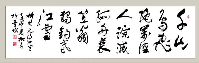 書如其人兮,觀書而知品性;人憑底蘊兮,書乃文氣釀成。茂霖君自幼酷愛國學(xué),詩詞曲賦兼通;大學(xué)更習(xí)中文,杏壇執(zhí)教為生。滿腹學(xué)養(yǎng),傾注翰墨;一腔才氣,揮灑筆鋒。遂有大美洋溢,陶然悅?cè)诵男?;遂有雅韻靈犀,物我相看敬亭。品君《禪茶一味》,自有“香茗入夢”;駐足《荒野云樓》,忽見“寒江釣翁”;飲“江波”而欲醉,近“草木”而忘情。何來神形之妙?習(xí)書久久為功。廢寢忘餐,載熔載冶,千錘百煉,積健為雄。殊貴理論洞明,悟得堂奧其精:臨帖讀帖并重,主張身體力行;法古而不泥古,創(chuàng)新水到渠成。尤懷蠟炬之德,投身青少書教,不辭奔波勞碌,鼓勵提攜后生。常云自得其樂,樂此翰苑躬耕,耕者得償夙愿,愿君大器更成!