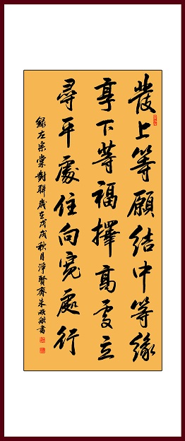 朱曉航自幼愛好書法,學(xué)書三十余載,師法于古人,研大篆、魏碑等書體,臨顏、柳、米、王等大家帖。后拜當(dāng)代昆侖派書法創(chuàng)始人、中國(guó)書法世家保氏書法第三代傳人保國(guó)安先生、清華美院導(dǎo)師胡一龍等多位大家為師,朱曉航所寫字體遒勁有力、古樸典雅、中正厚重、筆法流暢灑脫、章法氣韻通暢,頗具大家風(fēng)范,其作品多次在各類大賽中獲獎(jiǎng)、參展,作品被天安門城樓等多家單位收藏和展示,并被美籍華人美國(guó)聯(lián)邦政府交通部部長(zhǎng)趙小蘭、法國(guó)巴黎圣母院、馬拉西亞皇室、拿督以及其他外國(guó)友人和政要所收藏。