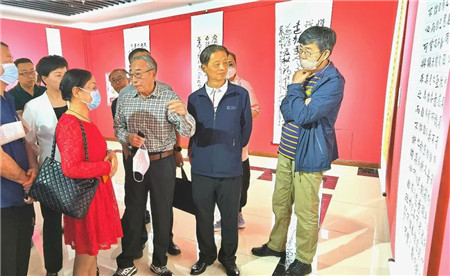 內蒙古政協(xié)人口資源環(huán)境委員會副主任、內蒙古政協(xié)書畫院副院長賀貴璽,內蒙古書法家協(xié)會主席、秘書長李力,內蒙古書法家協(xié)會副主席楊家偉,市文聯(lián)黨組書記郭林貴,市文聯(lián)主席云巧堂,書法家康新民、王迺欣、崔天慶,市書協(xié)常務副主席朱小硯,副主席王潤成、顧景云、葉滿宇、云惠文、左大寧、李鍇、李峰、劉洵等一同參觀了展覽并參加了展覽研討會。