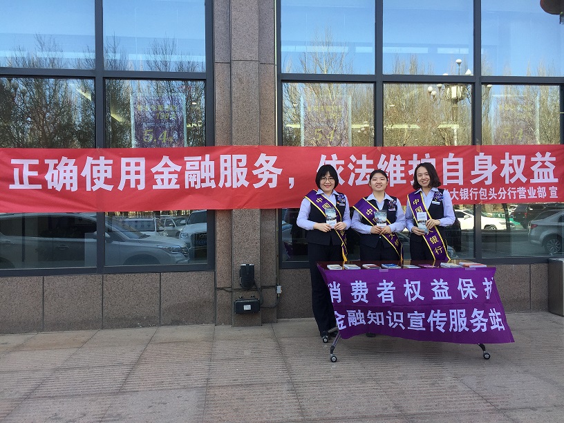 (本網(wǎng)訊:王振濤)3月15日是國際消費者權(quán)益日,為踐行陽光服務(wù)理念,切實做好客戶服務(wù)及公眾教育工作,中國光大銀行呼和浩特分行在3月1日至 3月31日期間把陽光服務(wù)和消費者權(quán)益保護(hù)工作作為本單位的重點工作內(nèi)容,將各項任務(wù)和要求迅速傳達(dá)并落實到每一位員工,嚴(yán)格按照各項服務(wù)規(guī)范對服務(wù)設(shè)施、服務(wù)流程、服務(wù)行為、收費管理、信息披露、投訴管理等開展認(rèn)真排查,并在廳堂、支行附近社區(qū)開展了一系列的消費者權(quán)益保護(hù)活動,針對不同客群發(fā)放相關(guān)宣傳資料和講解金融消費者權(quán)益保護(hù)典型案例,強(qiáng)化金融消費者合法維權(quán)意識。