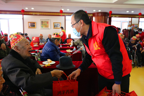 在此次活動中,鴻茅藥業(yè)向??道夏旯⒕栀泝r(jià)值近十萬元的健康物資,如鴻茅藥酒、氨糖、蛋白粉等養(yǎng)護(hù)骨骼、提高免疫力的健康產(chǎn)品;內(nèi)蒙古送變電有限責(zé)任公司、內(nèi)蒙古農(nóng)牧業(yè)機(jī)械質(zhì)量監(jiān)督管理站同時(shí)捐贈慰問品米面油,圖書文體用品等。除了為公寓老人送去健康和溫暖之外,他們還為公寓300余名70歲以上老人慶生。