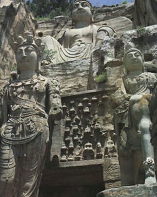 天龍山因北齊高洋建天龍寺而得名,又因山上的石窟而出名。整個(gè)天龍山石窟是精華。有東魏,北齊、隋、唐開鑿的24個(gè)洞窟,其中以唐代最多。第九窟“漫山閣”中的彌勒大佛坐像高約8米,比例和諧,容貌端莊凝重,是石窟中最值得欣賞的一窟。曾被日、英等列強(qiáng)掠盜破壞……