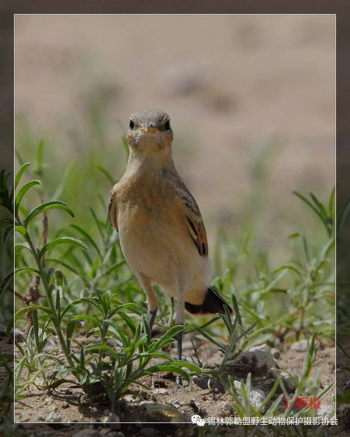 沙?Isabelline Wheatear 體大(16厘米)而嘴偏長的沙褐色?。色平淡而略偏粉且無黑色臉罩,翼較多數(shù)其他?種色淺,尾比秋季的穗?為黑。雄雌同色,但雄鳥眼先較黑,眉紋及眼圈蒼白。與雌漠?的區(qū)別在身體較扁圓而顯頭大、腿長,翼覆羽較少黑色,腰及尾基部更白。幼鳥上體具淺色點斑,胸羽羽緣暗黑。 虹膜-深褐;嘴-黑色;腳-黑色。 沙?叫聲:高的管笛音cheep。連續(xù)鳴唱長達15秒,較其他?都長,包括模仿叫聲及一連串清晰的wee-wee-wee-wee-wee聲。于冬季也作低柔甜美的鳴聲。