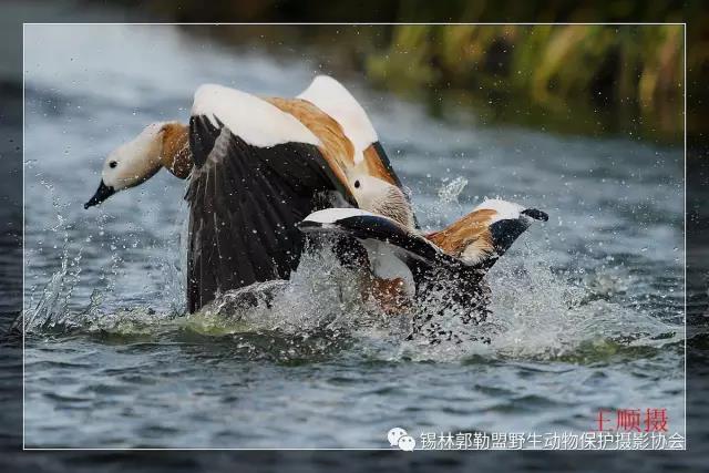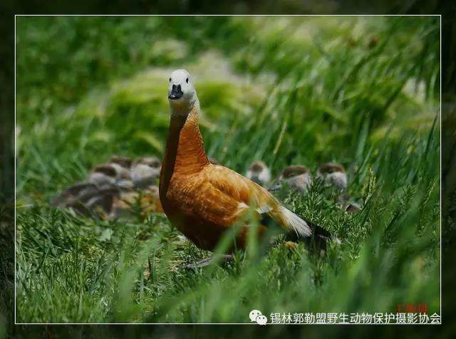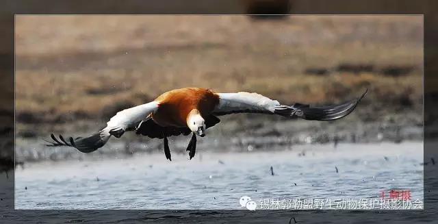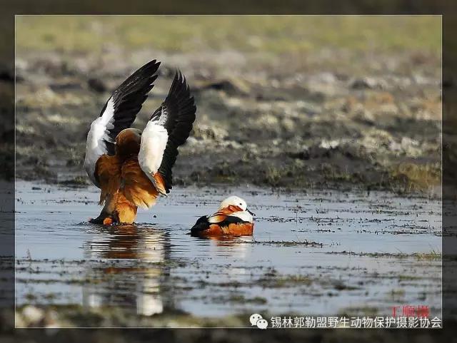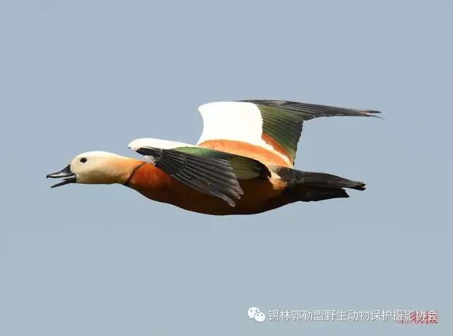 赤麻鴨(學(xué)名:Tadorna ferruginea)體型較大,體長51-68厘米,體重約1.5kg,比家鴨稍大。全身赤黃褐色,翅上有明顯的白色翅斑和銅綠色翼鏡;嘴、腳、尾黑色;雄鳥有一黑色頸環(huán)。飛翔時黑色的飛羽、尾、嘴和腳、黃褐色的體羽和白色的翼上和翼下覆羽形成鮮明的對照。棲息于開闊草原、湖泊、農(nóng)田等環(huán)境中,以各種谷物、昆蟲、甲殼動物、蛙、蝦、水生植物為食。繁殖期4~5月,在草原和荒漠水域附近洞穴中營巢,每窩產(chǎn)卵6~15枚,卵橢圓形,淡黃色,雌鳥負責(zé)孵卵。主要繁殖于歐洲東南部、地中海沿岸、非洲西北部、亞洲中部和東部,越冬在日本、朝鮮半島、中南半島、印度、緬甸、泰國和非洲尼羅河流域等地。
