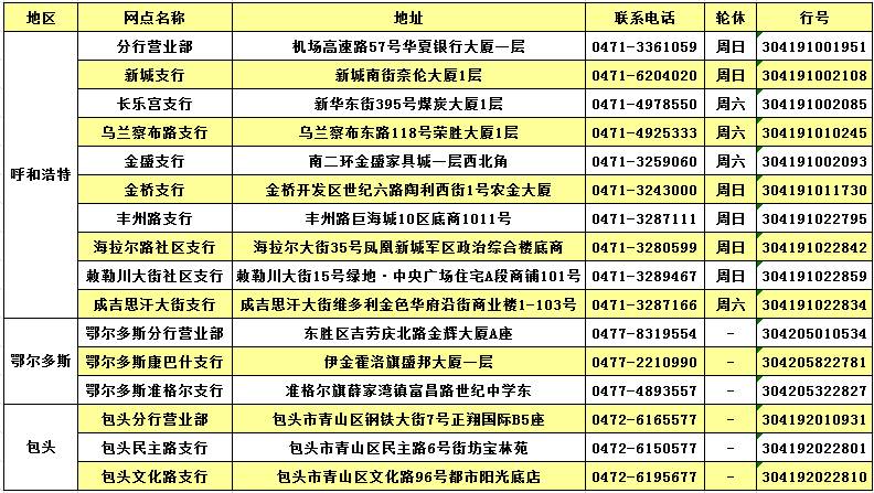 華夏銀行呼和浩特分行網(wǎng)點信息