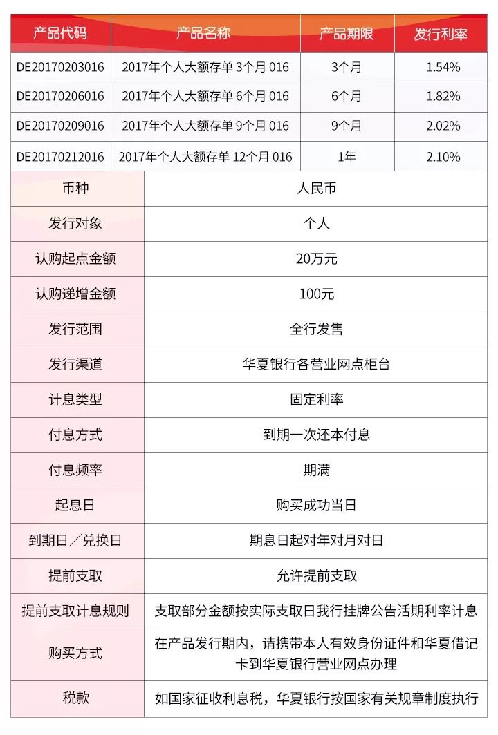本期產(chǎn)品采用電子化存單,存款人須憑華夏銀行借記卡,在華夏銀行網(wǎng)點(diǎn)持本人有效身份證件并填寫《華夏銀行個(gè)人大額存單業(yè)務(wù)申請(qǐng)書》辦理認(rèn)購(gòu)。