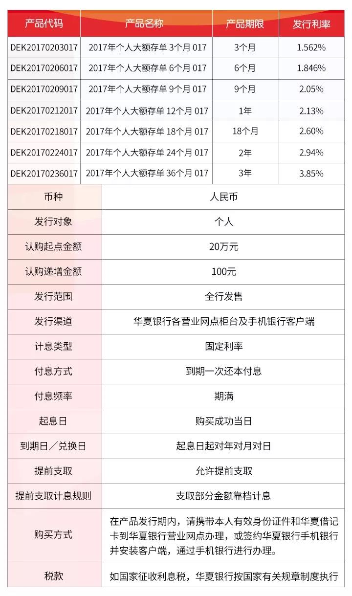 由于上述原因未能自動兌付的大額存單,到期日之后的逾期時段按照實際支取日華夏銀行掛牌活期存款利率計息。根據(jù)相關(guān)業(yè)務(wù)規(guī)定存款人可本人或委托他人華夏銀行網(wǎng)點柜面辦理到期人工兌付,相關(guān)手續(xù)同認購部分。