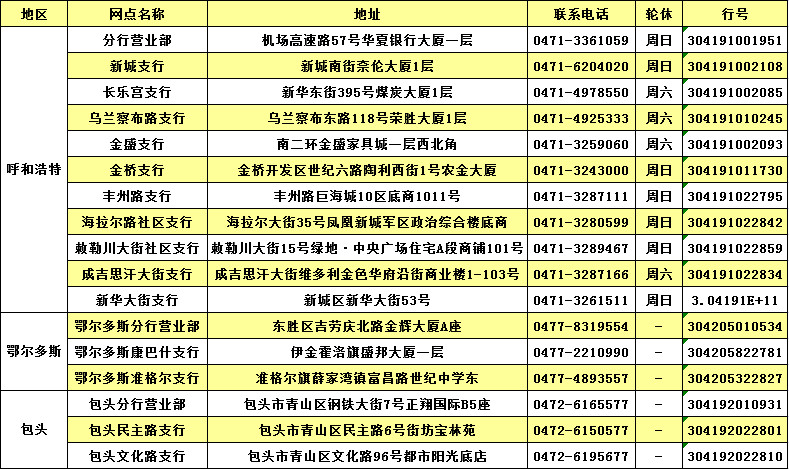 華夏銀行呼和浩特分行網(wǎng)點(diǎn)信息