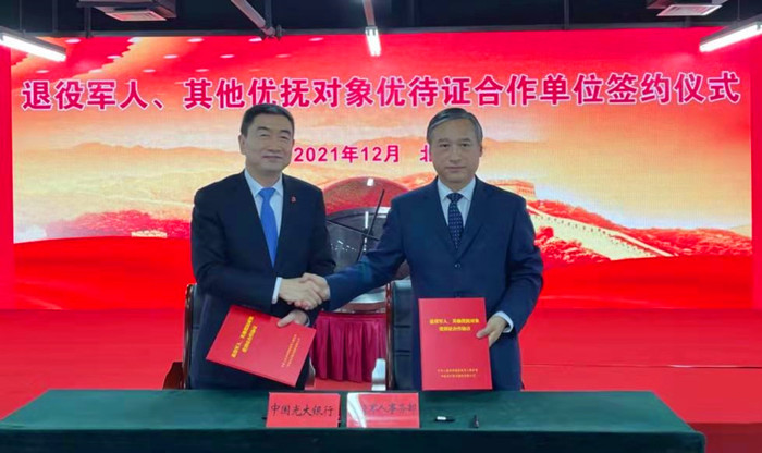 近日,中國(guó)光大銀行作為唯一一家股份制商業(yè)銀行參加退役軍人事務(wù)部舉辦的“退役軍人、其他優(yōu)撫對(duì)象優(yōu)待證(以下簡(jiǎn)稱“優(yōu)待證”)申領(lǐng)”啟動(dòng)儀式,并作為首批合作銀行與退役軍人事務(wù)部簽署《退役軍人、其他優(yōu)撫對(duì)象優(yōu)待證合作協(xié)議》。
