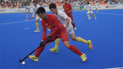 在2025年全國男子曲棍球錦標(biāo)賽決賽中,廣東隊(紅色賽服)戰(zhàn)勝北京隊奪得賽事第三名。(攝影:李金梅)