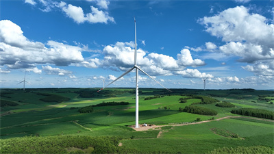 風(fēng)車葉片迎風(fēng)轉(zhuǎn)動,將清潔能源輸送到千家萬戶。(來源:莫力達(dá)瓦達(dá)斡爾族自治旗融媒體中心)
